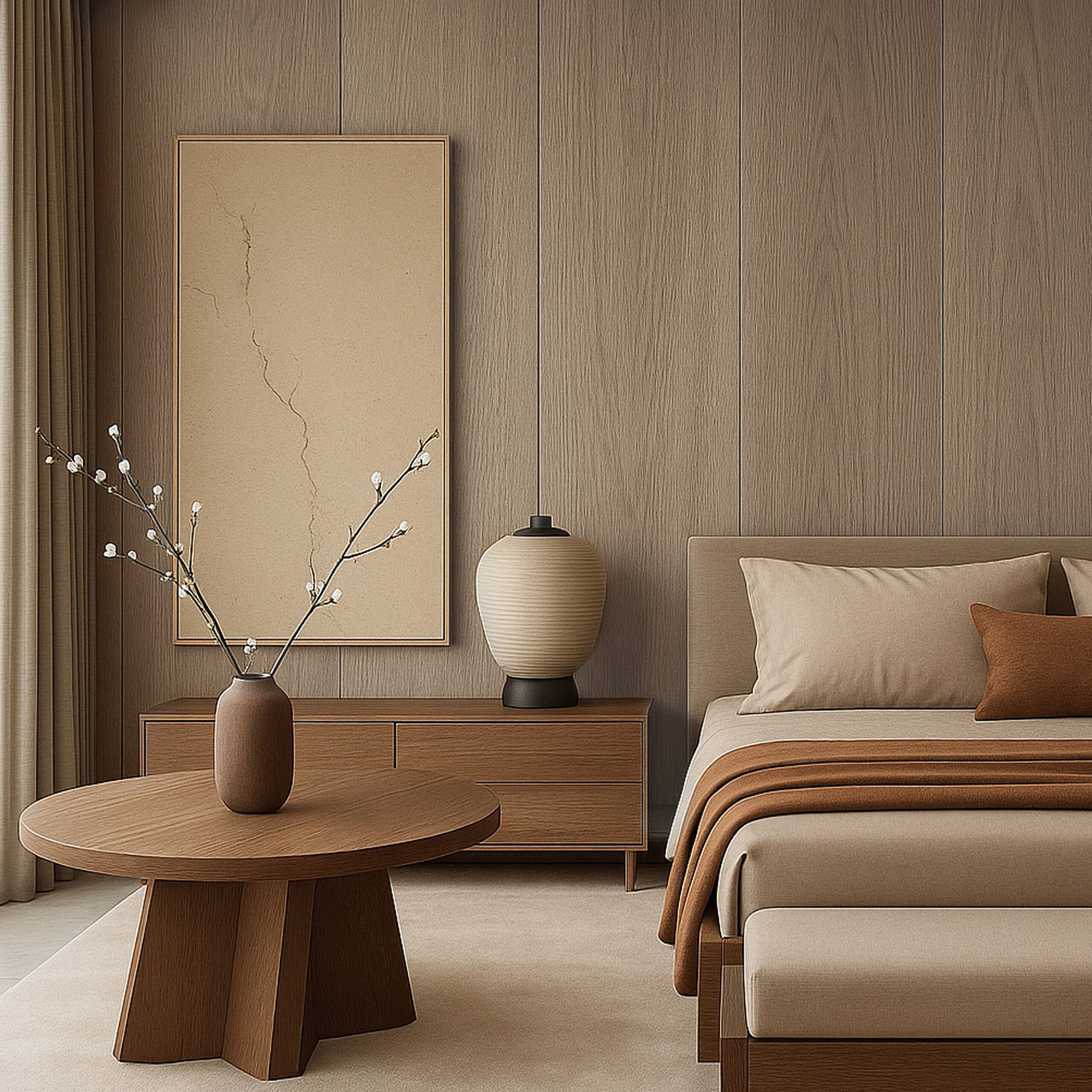 Современные панели выполнены с высокой точностью, что позволяет им качественно имитировать натуральные материалы — дерево, камень, металл, ткани — и практически не отличаться от оригинала. При этом многие модели обладают лёгким рельефом, который добавляет текстурность и глубину, не разрушая минималистичную концепцию интерьера. Такой эффект позволяет сочетать практичность с эстетикой, создавая уникальные визуальные решения.